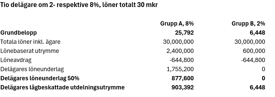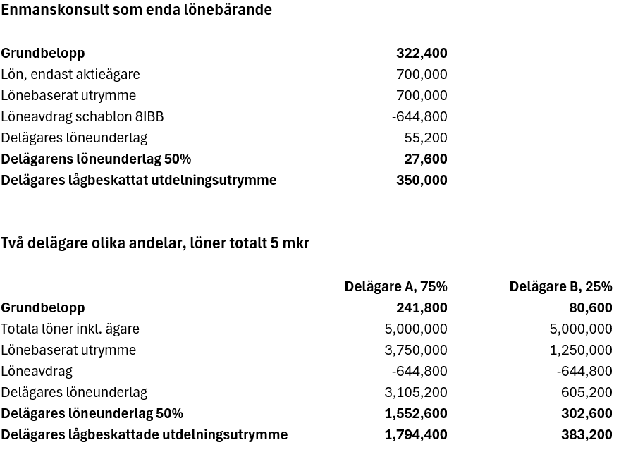 - Lönebaserat utrymme ((50% * (löner inkl. delägarlöner)-8IBB (644.800))